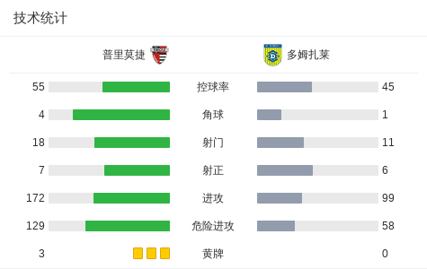 第85分钟,多姆扎莱球员Gal Kranjcic助攻Nikola Buric打入一球。