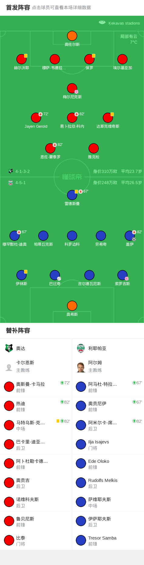 第7分钟,利耶帕亚球员索罗吉斯自摆乌龙。