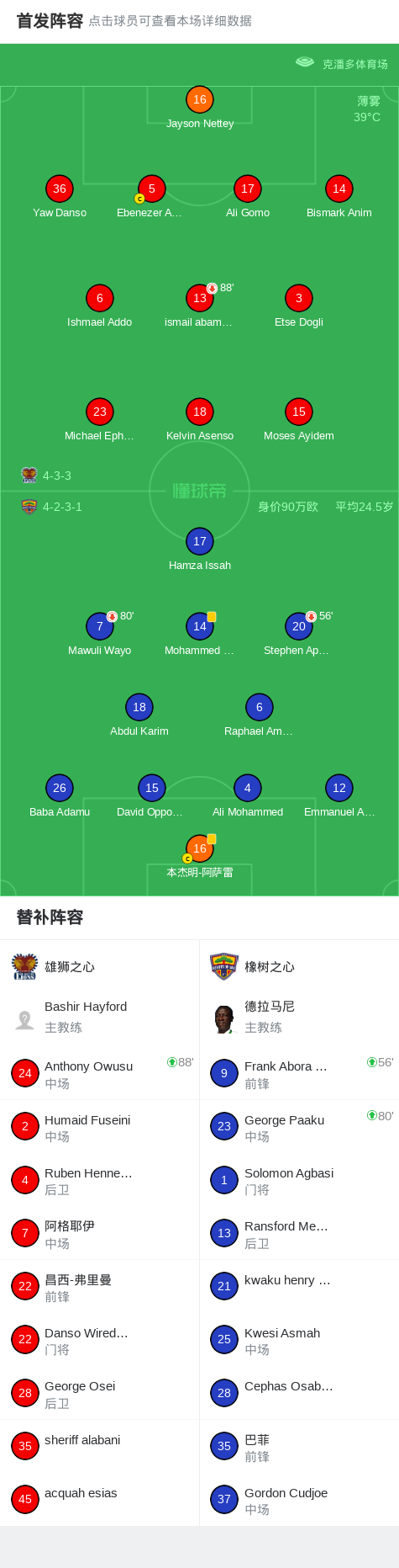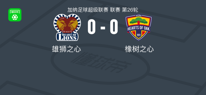 雄狮之心0-0橡树之心,两队破门乏术 2026-03-21 01:02:17 北京时间3月20日加纳足球超级联赛 联赛 第26轮,雄狮之心主场对阵橡树之心。最终比分雄狮之心 0-0 橡树之心。点击查看本场比赛详细数据>>点击查看加纳超完整积分榜>> 球队阵容 技术统计